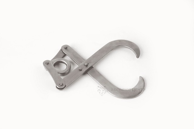 Акушерський гачок зроблений з високоякісної нержавіючої сталі і має пакистанське походження. Він складається з двох гачкоподібне важелів, які з'єднані між собою ручкою за допомогою шарніра.