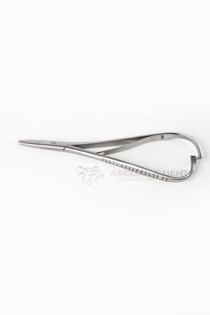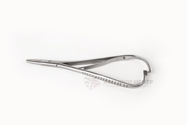 Голкотримач (Матьє). Хірургічний інструмент для утримування хірургічної голки при накладенні шва, забезпечений пружними рукоятками і кремальерного замком, який розмикається при подальшому стисненні рукоятки.