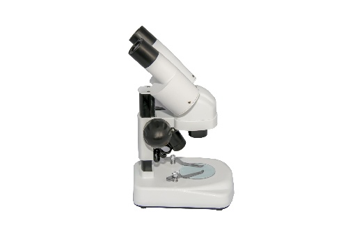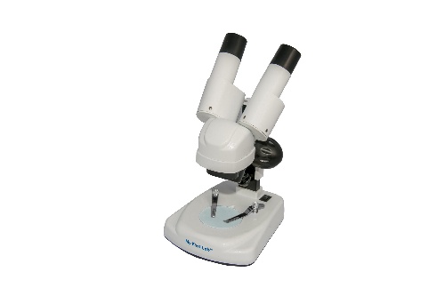 Шкільний мікроскоп для ДОСЛІДЖЕНЬ початкового уровня в області мінералогії, ботаніки, біології. Верхній світлодіодній освітлювач учбового стереомікроскопу MFL SMD-04 працює від 2х елементів живлення типу АА.