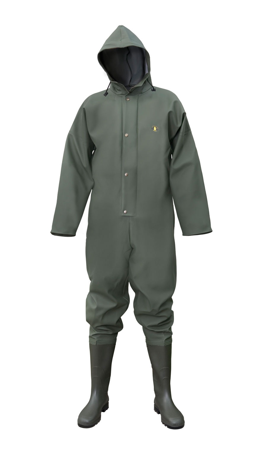 Комбінезон з чобітьми ПВХ, з центральною бортовою застібкою на тасьму - "блискавку", з вітрозахисною планкою на кнопки; з капюшоном, і з двосторонніми герметичними швами. Рукава з внутрішніми манжетами. Комбінезон виконаний з міцної, вологостійкої тканини Plavitex Heavy Duty. Призначений для роботи в воді. Захищає від атмосферних опадів, дощу і вітру. Виріб відповідає європейським стандартам: EN ISO 13688 та EN 343.