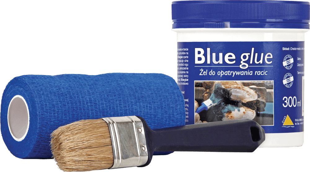Клеєвидний гель для терапії при захворюванні копит. Використовується при перев'язці, натиранні поверхні копита після проведеної корекції. Ефективність основана на дії хелату міді та цинку, що підсилює твердість копитного рогу, запобігаючи його просушуванні. Клеєвидний гель зберігає властивості незалежно від контакту з виділеннями, що також впливає на успішність лікування.