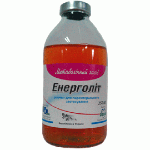 Енерголіт - комплексний препарат у етіотропній, симптоматичній, заміщуючій терапії неінфекційних та інфекційних захворювань, корекції та нормалізації обмінних процесів у тварин. Препарат містить вуглеводи як джерело енергії у двох формах - швидкометаболізуючого (глюкоза) та сповільненометаболізуючого (сорбітол). Це забезпечує організм енергетичним субстратом на тривалий час, мінімізує коливання вмісту глюкози в крові та навантаження на печінку, підшлункову залозу, тощо. Ацетат натрію володіє буферними властивостями і нейтралізує надлишкові органічні кислоти, які накопичуються при ацидозах. Катіони натрію, калію, магнію та кальцію є життєво необхідними електролітами для підтримки водно-сольового балансу організму, тонусу мускулатури,тощо. Вітаміни В1, В2, В3, В5, В6, В12 є кофакторами багатьох ферментів, які беруть участь у внутрішньоклітинному метаболізмі. Амінокислоти є не тільки мономерами структурних, регуляторних та ензимних білків, а й регуляторами судинного тонусу (аргінін) та акцепторами аміаку (глютамінова кислота).