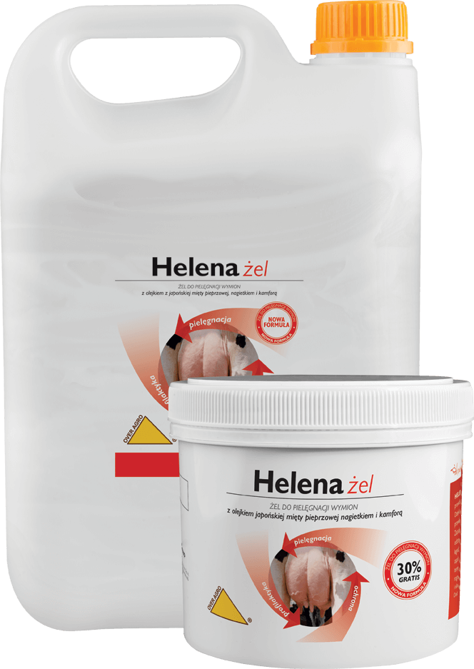 HELENA гель є препаратом бе каренції на молоко, ефективно підтримує боротьбу з маститом. Містить натуральні ботанічні компоненти. Ефірні масла з японської м'яти перцевої діють антисептично, а також стимулюють імунну систему організму. Добавка камфори розігріває і покращує кровообіг вимені, активні речовини екстракту з календули мають антибактеріальну дію. Гель зменшує набряк вимені, що виникає при маститі або перед пологами.