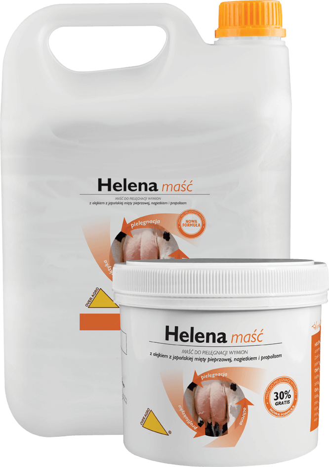 HELENA мазь є дієвим препаратом при маститі. Має протизапальну дію і знижує кількість соматичних клітин в молоці. Крім того, масло м'яти перцевої стимулює кровообіг в вимені, а календула підтримує протизапальну дію. Додавання прополісу надає мазі унікальний колір, який підсилює антибактеріальну та противірусну дію. Мазь має сильні знеболюючі властивості, а також надає шкірі пружність, захищаючи її від мікротріщин.