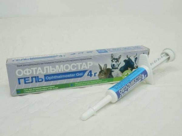 Гель Офтальмостар − комбінований препарат, до складу якого входять івермектин, тилозин тартрат і ксероформ. Протипаразитарний компонент івермектин посилює зв'язок ГАМК (гама-аміномасляної кислоти) із спеціальними рецепторами на нервових закінченнях паразитів, блокуючи нервові імпульси, що призводить до загибелі статевозрілих і личинкових стадій нематод (зокрема родини Thelaziidae), акариформних кліщів (родинDemodecidae, Psoroptidae, Sarcoptidae) і крилатих комах (Muscidae). Тилозин тартрат активний щодо багатьох видів мікроорганізмів та їх асоціацій: Mycoplasma spp., Staphylococcus spp., Streptococcus spp., Rickettsia spp. і ін. Разом з антисептиком ксероформом тилозин пригнічує розвиток вторинної інфекції. Окрім того, ксероформ володіє протизапальною та репелентною дією.