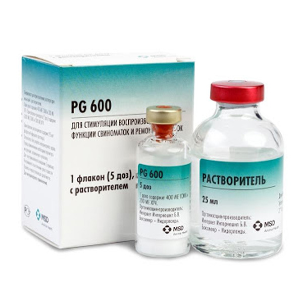 ПГ-600 містить 400 МО гонадотропіну сироватки крові лошат кобил (стимулює зростання і дозрівання фолікулів) і 200 МО людського хоріонічного гонадотропіну (сприяє овуляції та формування жовтого тіла яєчників)