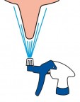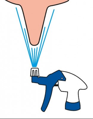 - розташована під особливим кутом розпилююча головка для оптимального очищення сосків вимені та точного впорскування дезінфікуючого засобу