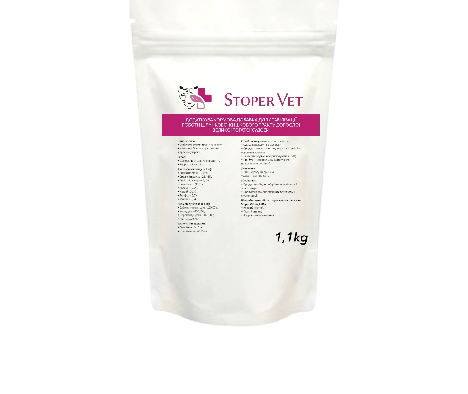 Stoper Vet – Прикорм для стабілізації роботи шлунково-кишкового тракту для дорослої ВРХ, 1,1 кг